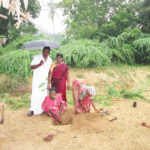 Atmasanga Tree Planting Campaign in Edayanchavadi Village (Auroville). Initiative taken by Local Panchayat President Tmt. Selvi Ranganathan. BDO of Vanur, Mr. Roshan and Ms Muthukumari participated in the tree planting activity. They planted about 80 trees along village road. Free saplings were supplied by Atmasanga.